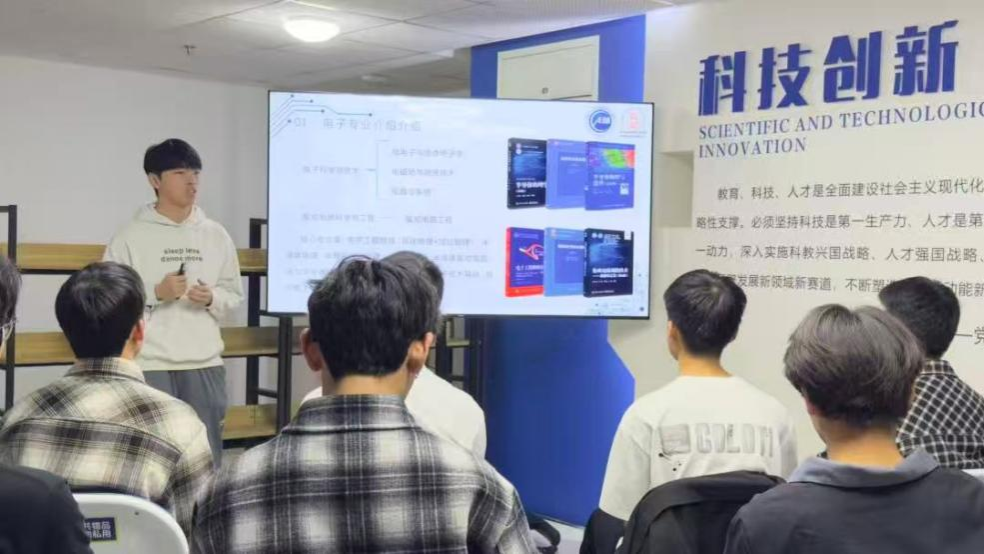 本次沙龙由学院2022级电子专业张若贤同学主讲。他以GPA4.66/5、专业排名2/133的成绩,斩获国家奖学金、全国大学生集成电路创新创业大赛西北赛区三等奖等荣誉,兼具理论与科创经验,围绕 “电子专业解读”“科技竞赛推荐”“个人经验分享” 展开讲解。