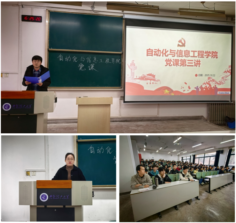 为严把党员发展“入口关”,引导新生端正入党动机,2025年10月22日下午16时30分,西安理工大学自动化与信息工程学院2025级院党课第三讲在曲江校区顺利开讲。本次党课邀请学院学生党建负责人米伟丽老师担任主讲,2025级本科生辅导员张炜老师主持,全体2025级本科生参加学习。