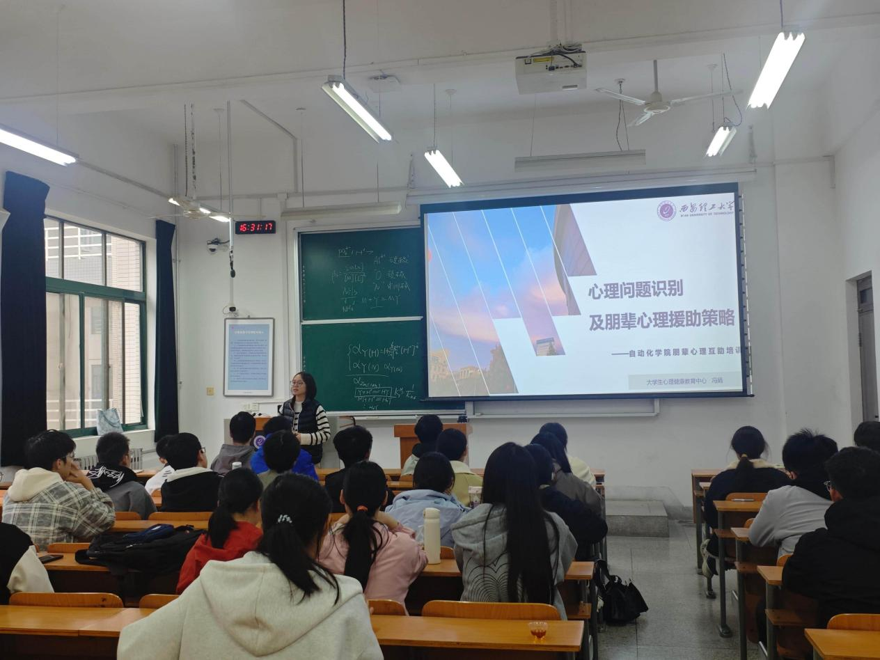 为提升班级心理委员、宿舍心晴员专业素养,筑牢班级心理健康防线,10月24日下午,自动化学院面向2025级新生心理委员、宿舍心晴员举办专题培训讲座。本次讲座邀请大学生心理健康教育中心冯娟老师担任主讲人。