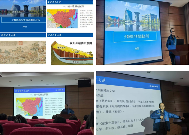 讲座中,樊教授以历史脉络为纲,从三大维度深入解读少数民族对国家发展的卓越贡献。其一,聚焦“统一边疆定版图”,梳理隋唐至清朝时期,少数民族通过戍边、治理与融合,在巩固边疆联结、奠定国家疆域框架中的关键作用;其二,围绕“保卫边疆御外侮”,回顾1840年以来,各少数民族与汉族同胞并肩作战、共抗外辱的壮阔历程,彰显中华民族共同体的凝聚力;其三,阐释“开发边疆建家园”,通过物质文明与精神文明双重维度,展现少数民族在适应边疆环境、创造特色文化中的智慧与成就。