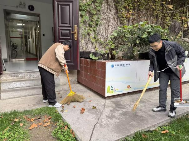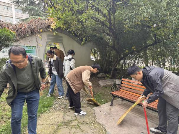 在带队老师的统一号召和现场带领下,支部党员们迅速行动、分工协作,有序开展集体卫生大扫除活动。大家手持扫帚、抹布、垃圾袋等工具,重点对教五楼的教研室、走廊通道、楼梯转角,以及寒园周边的绿地、步道、公共设施等区域进行全面清扫。过程中,党员们不怕脏、不怕累,仔细清除积存的杂物垃圾,认真清理卫生死角和顽固污渍,全力为师生创造干净整洁、舒适宜人的校园环境。