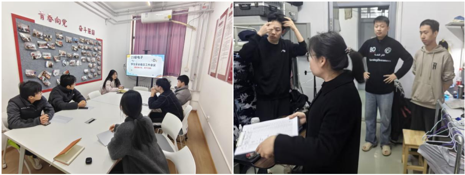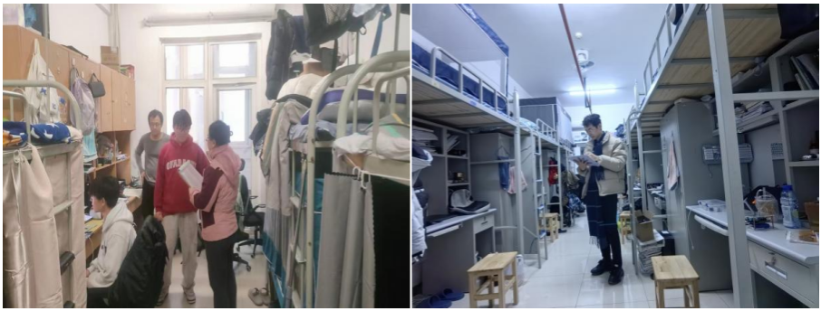 本次专项行动以“筑牢安全防线,守护学子平安”为目标,将晚点名制度落实与宿舍安全排查、思想动态掌握深度融合,构建“教育-排查-管控”三位一体的工作体系。辅导员结合高校宿舍安全典型案例开展教育,强调晚归、夜不归宿风险及请销假规范。在落实晚点名同时,学院以“全覆盖、无死角”原则组织全员遍访学生宿舍,重点聚焦三大核心:一是安全隐患排查,严查冬季高发的电热毯、小太阳等违规取暖电器,私拉乱接电线、插排串联超负荷用电等问题;二是住宿状态核查,结合晚点名数据现场确认学生到寝情况,对未到寝学生第一时间联系确认去向;三是思想动态掌握,通过“拉家常”式交流了解学生学业困惑、人际矛盾等问题,将心理疏导、学业指导融入走访全过程,让宿舍成为育人“第二课堂”。