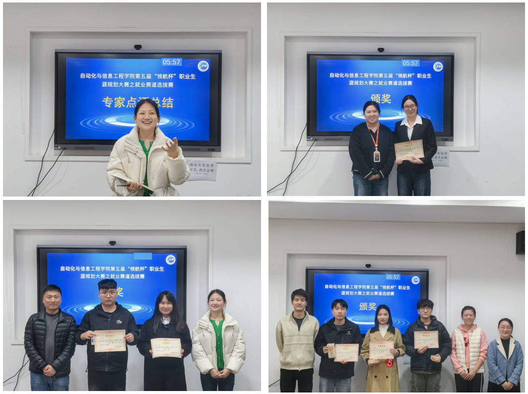 现场答辩环节还原真实求职场景,重点考验选手沟通表达、逻辑思维与临场应变能力。面对评委提出的专业问题与职业规划相关疑问,选手们从容应对、应答流畅,凭借扎实的专业素养与出色的应变能力赢得评委认可。赛后,西安理工大学就业指导中心王佳老师对大赛进行点评,既肯定选手们的备赛态度与综合表现,也结合当前就业趋势、岗位市场需求,鼓励同学们树立正确择业观与就业观,充分发挥自身特长,抓住求职机遇。最后进行颁奖,一等奖1名、二等奖2名、三等奖3名,同时还评选出优秀指导教师5名。