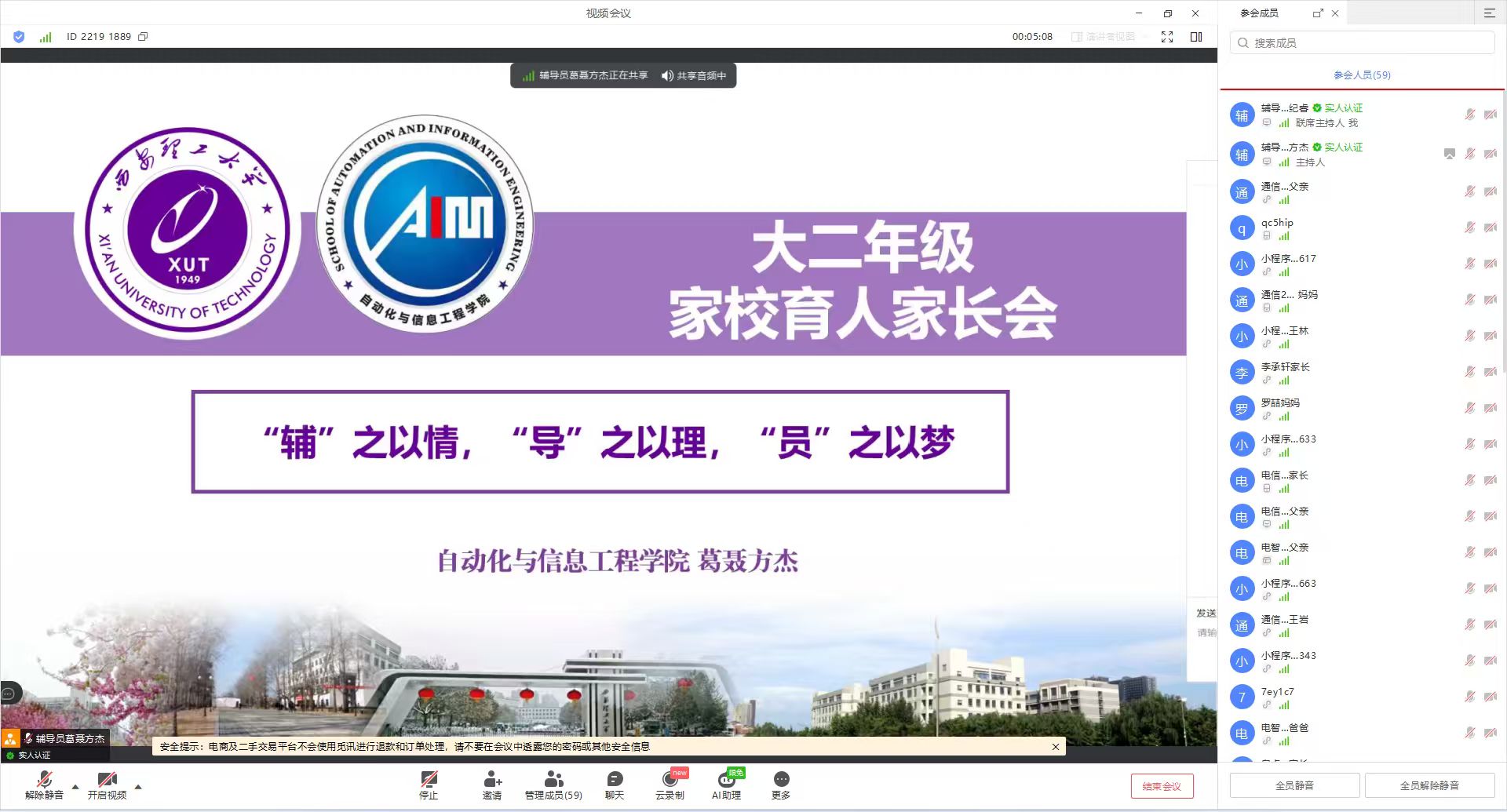 为进一步深化家校协同育人机制,凝聚教育合力,共同助力学生成长成才,3月9日晚,我校自动化学院通过线上会议的方式,成功举办了“家校同心,共育未来”家校协同工作研讨会。大一、大二年级辅导员与数百位学生家长“云端”相聚,共话育人良策,共绘成长蓝图。