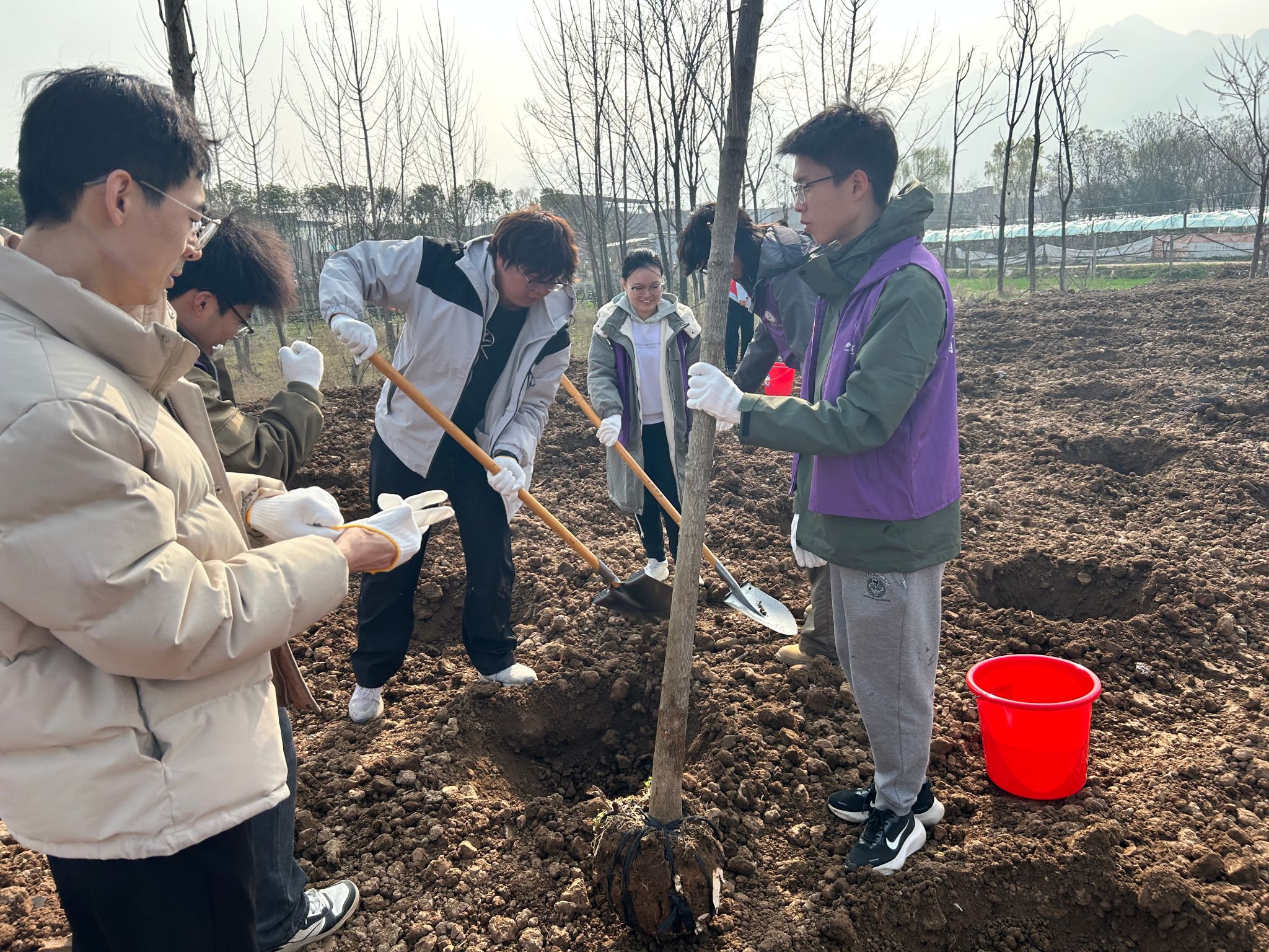 3月11日,学院组织师生志愿者前往秦岭,开展“美丽中国·青春行动”植树护绿志愿服务活动,辅导员白纪睿、葛聂方杰带队参与。活动现场,志愿者们挥锹铲土、扶苗填坑、提水浇灌,分工协作、默契配合,历经两小时辛勤劳作,成功栽种树苗20余株,为秦岭生态屏障增添勃勃新绿。此次活动将劳动教育与生态文明教育有机结合,引导学子在躬身实践中增强环保意识,以实际行动守护绿水青山,让雷锋精神融入生态保护实践。
